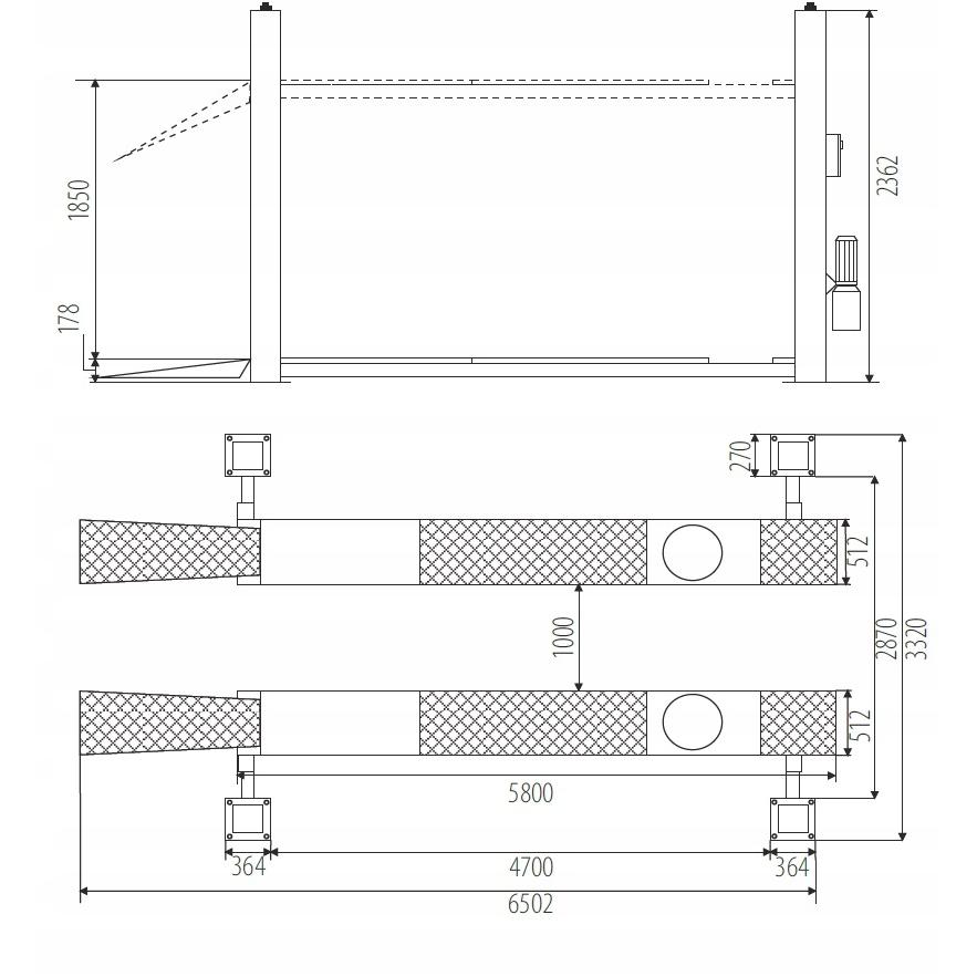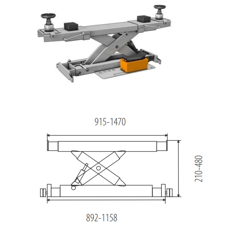 - Podnośnik przystosowany do obsługi geometrii, posiada wybrania pod obrotnice oraz płyty rozprężne
