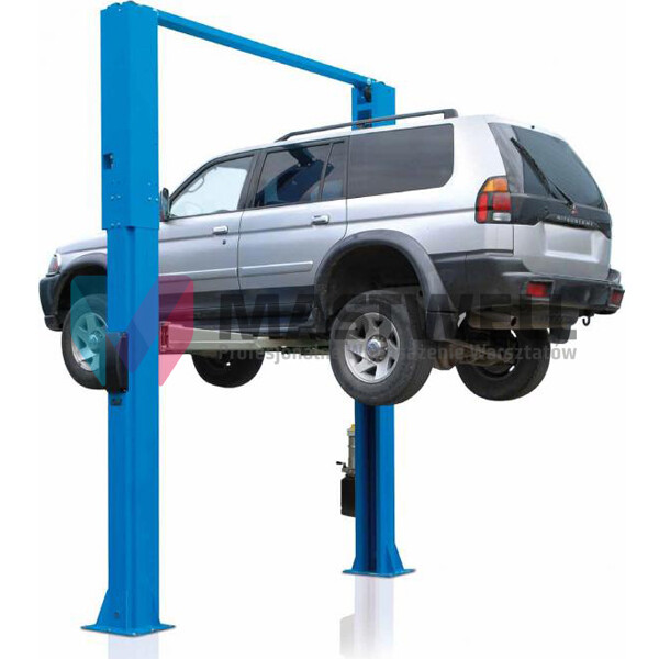 Elektromechaniczny asymetryczny podnośnik dwukolumnowy. Niewielkie wymiary połączenia między kolumnami. System autosmarowania śrub. . Przekazanie napędu na drugą kolumnę za pomocą wału napędowego (Cardana) pomiędzy przekładniami stożkowymi wypełnionymi olejem i nie wymagającymi konserwacji.