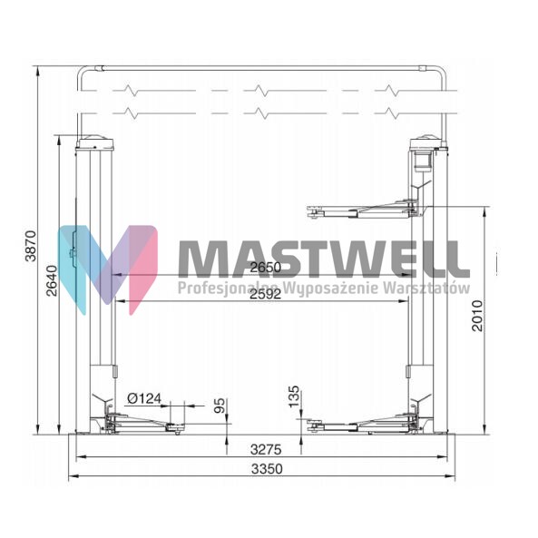 Śrubowy podnośnik przeznaczony do podnoszenia samochodów osobowych, SUV, terenowych i dostawczych o masie do 3,2 t. Elektromechaniczny napęd za pomocą dwóch silników.Nakrętka główna oraz zabezpieczająca wykonana z brązu zapewnia wysoką odporność na zużycie. Długie ramiona, także do busów.